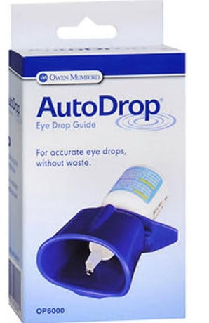 Alternatively, you can lie down and place the drop in the inner corner of the closed eyelid, then open the eye slowly to allow the drop to roll in. If still too difficult with the drop application, you can try eye drop guides such as AutoDrop®, which hold the eye open and improve aim